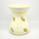 Aromalampa bez odnímateľnej misky žltá-zlatistá s mramorovým motívom.